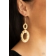 A mismatched pair of hammered gold ovals delicately link into a blinding metallic lure. Earring attaches to a standard fishhook fitting.