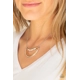 A strand of shiny silver beads give way to bowing gold and silver frames, creating an edgy pendant below the collar. Features an adjustable clasp closure.