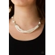 Oversized white pearls and crystal-like beads give way to layers of beaded pearl strands below the collar for a timeless look. Features an adjustable clasp closure.