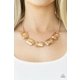 Gorgeously oversized golden emerald cut gems fabulously link below the collar, creating an iridescently icy statement piece. Features an adjustable clasp closure.