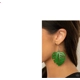 Painted in a distressed green finish, an airy palm leaf frame swings from the ear for a colorfully seasonal look. Earring attaches to a standard fishhook fitting.