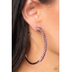 The front half of a glistening silver hoop is encrusted in a glassy row of dainty pink rhinestones for a glamorously timeless finish. Earring attaches to a standard post fitting. Hoop measures approximately 2 1/2" in diameter.