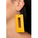 Brushed in a sunny yellow finish, a thick rectangular wooden frame swings from the ear for a retro look. Earring attaches to a standard fishhook fitting.