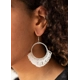 Rings of dainty iridescent seed beads cascade from the bottom of a matching beaded hoop, creating a dramatically colorful fringe. Earring attaches to a standard fishhook fitting.