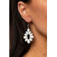 A bubbly collection of white teardrop and marquise shaped acrylic beads coalesce into a colorful frame. Earring attaches to a standard fishhook fitting.