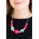 Gradually increasing in size near the center, a collection of pink, silver, and cloudy beads join below the collar in a statement making fashion. Features an adjustable clasp closure.