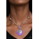A dainty collection of ornate silver beads and purple stone beads dot a dainty silver chain, giving way to a hammered silver ring featuring a shell-like center. A hammered silver disc and purple shell-like disc swing from the bottom, creating a summery pendant. Features an adjustable clasp closure.