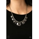 Featuring regal emerald cuts, smoky hematite rhinestones gradually increase in size as they glide along a rounded silver snake chain below the collar. Separated by stacks of silver rings, the smoldering rhinestones are encased in sleek silver frames for a glamorously gritty finish. Features an adjustable clasp closure.