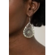 Featuring a shattered snowflake pattern, the front of an airy silver teardrop is adorned in dainty green rhinestones for an icy finish. Earring attaches to a standard fishhook fitting.