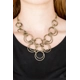 Brushed in an antiqued shimmer, brass rings link together below the collar, creating a bold interlocking pendant. Features an adjustable clasp closure.