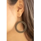 An edgy strand of brass chain wraps around a brass ring, coalescing into a bold industrial hoop. Earring attaches to a standard fishhook fitting.