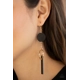 A twisted gold hoop is suspended between round and rectangular black wooden frames, creating a refined lure. Earring attaches to a standard fishhook fitting.