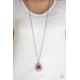 A glowing red moonstone is pressed into the center of a silver teardrop pendant swirling with regal filigree for a regal finish. Features an adjustable clasp closure.