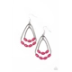 The bottoms of textured silver teardrop frames embellished in polished pink beads, creating vivaciously layered frames. Earring attaches to a standard fishhook fitting.