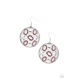 Fun silver and red rhinestone ovals playfully fill a round silver frame. Earring attaches to a standard fishhook fitting.