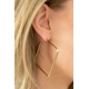 A deceptively simple square frame is tilted on point to create a geometric hoop. Its sharp angles are complemented by its rich gold finish, making a lasting impression. Earring attaches to a standard post fitting. Hoop measures approximately 2" in diameter.