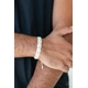 Rustic white leather laces decoratively weave across the wrist, creating a rugged centerpiece. Features an adjustable sliding knot closure.
