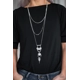 Three shimmery silver chains layer down the chest. Infused with white beaded accents, a stacked tribal pendant swings from the lowermost chain, while dainty silver plates connect along the bottom of the centermost chain for a seasonal flair. Features an adjustable clasp closure.
