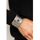 Dotted with a black stone center, a thick silver cuff is etched, stamped, and embossed in geometric tribal inspired textures for a seasonal look.