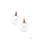 A strip of brown suede knots around interlocking silver rings, creating a layered hoop. Earring attaches to a standard fishhook fitting.