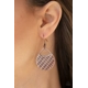 The front of a uniquely shaped copper frame is stamped and hammered in slanting rows of square and dotted patterns for a one-of-a-kind look. Earring attaches to a standard fishhook fitting.