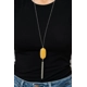 Featuring a faceted surface, a dewy yellow acrylic gem swings from the bottom of a lengthened silver chain. A shimmery silver chain tassel attaches to the bottom of the colorful pendant, adding flirtatious movement. Features an adjustable clasp closure.