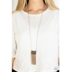 Radiating with glistening copper textures, a rectangular frame gives way to a dainty copper chain tassel for a seasonal look. Features an adjustable clasp closure. Sold as one individual necklace. Includes one pair of matching earrings.