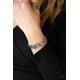 Adorned in dainty floral accents, hammered silver heart frames and classic silver beads are threaded along stretchy bands around the wrist for a romantically rustic look.