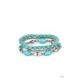 An earthy collection of mismatched turquoise stone and ornate silver beads are threaded along stretchy bands around the wrist for a colorful artisan flair.
