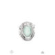 A dewy oval Blue Tint gem is pressed into the center of a textured silver frame, creating a raised centerpiece. Features a stretchy band for a flexible fit.