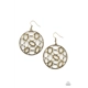 Rustic brass and aurum rhinestone encrusted ovals playfully fill a round brass frame. Earring attaches to a standard fishhook fitting.