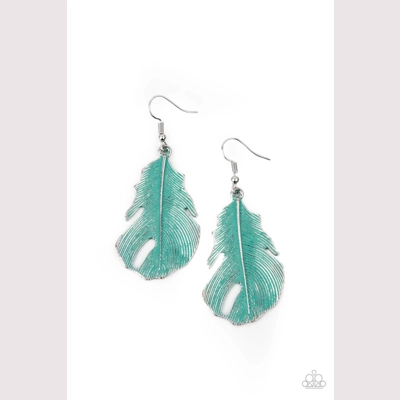 Brushed in a patina finish, a lifelike silver feather swings from the ear for a free-spirited fashion. Earring attaches to a standard fishhook fitting.