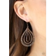 Hammered in a rustic finish, three distressed copper teardrops delicately link into a gritty lure for a seasonal look. Earring attaches to a standard fishhook fitting.