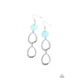 A pearly blue shell disc anchors to two shiny hammered silver asymmetrical hoops as they dangle from the ear creating a dazzling lure. Earring attaches to a standard fishhook fitting.