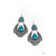 Dotted with blue teardrop beads, two mismatched silver frames with studded and embossed floral inspired textures delicately link into a colorful lure. Earring attaches to a standard fishhook fitting.