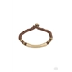 Infused with asymmetrical brass beads, a rust brass bar is knotted in place across the center of a braided brown cord for an urban flair around the wrist. Features a button loop closure.