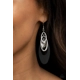 Infused with a glassy white rhinestone, shiny silver ovals, a twisted silver plate, and an oversized black frame trickle along a shimmery silver chain, creating a noise-making tassel. Earring attaches to a standard fishhook fitting.