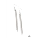 Dainty silver snake-like chains stream from the bottom of a glittery white rhinestone, creating a tapered tassel. Earring attaches to a standard fishhook fitting.