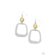 An oversized square hoop, delicately hammered for a shiny texture, dangles from a rectangular Primrose bead that is pressed into a silver frame for a dramatic modern material girl display. Earring attaches to a standard fishhook fitting.