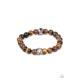 Infused with textured silver accents, an earthy collection of tiger's eye stones are threaded along a stretchy band around the wrist for a seasonal fashion.