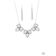 Trios of faceted dewy white teardrop beads encased in studded antiqued silver casings coalesce into leafy frames that delicately link into an ethereal fringe below the collar. Features an adjustable clasp closure.