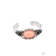 A bubbly Burnt Coral bead is nestled inside a silver filigree filled frame atop a dainty silver cuff, creating a whimsical centerpiece around the wrist.