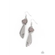 Ribbed in linear textures and dotted in silver studs, an asymmetrical silver plate links to the bottom of a gray stone frame for an artisan inspired design. Earring attaches to a standard fishhook fitting.