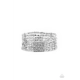 Held in place by a square centerpiece encrusted in row after row of dazzling hematite rhinestones, a dainty collection of silver cube beads are threaded along stretchy bands around the wrist, creating shimmery layers.