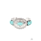 Dotted with a refreshing turquoise stone, a floral stamped scalloped silver frame sits atop a turquoise studded silver cuff, creating a southwestern inspired buckle atop the wrist.