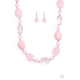 Featuring glassy, opaque, and solid finishes, an array of pink faux stone beads and dainty silver beads are threaded along an invisible wire below the collar, creating a colorful statement piece. Features an adjustable clasp closure.