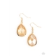A golden rhinestone gem is threaded along a rod inside a gold teardrop casing, creating a glamorous lure. Earring attaches to a standard fishhook fitting.