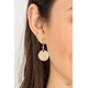 A hammered collection of gold and silver discs and asymmetrical rings link with sections of glistening gold chain across the chest, creating a casual display. Features an adjustable clasp closure.