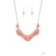 Teardrop Pale Rosette beads fan out from the bottoms of solitaire white rhinestones as they link below the collar, creating whimsically stacked frames. Featuring an oval center, oversized teardrop beads flare out from the centermost frame for a flirtatiously floral finish. Features an adjustable clasp closure.