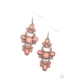 Featuring round, marquise, and teardrop shapes, a faceted collection of Burnt Coral beads connect into three ornate frames that link into a single lure for a flirtatious effect. Earring attaches to a standard fishhook fitting.